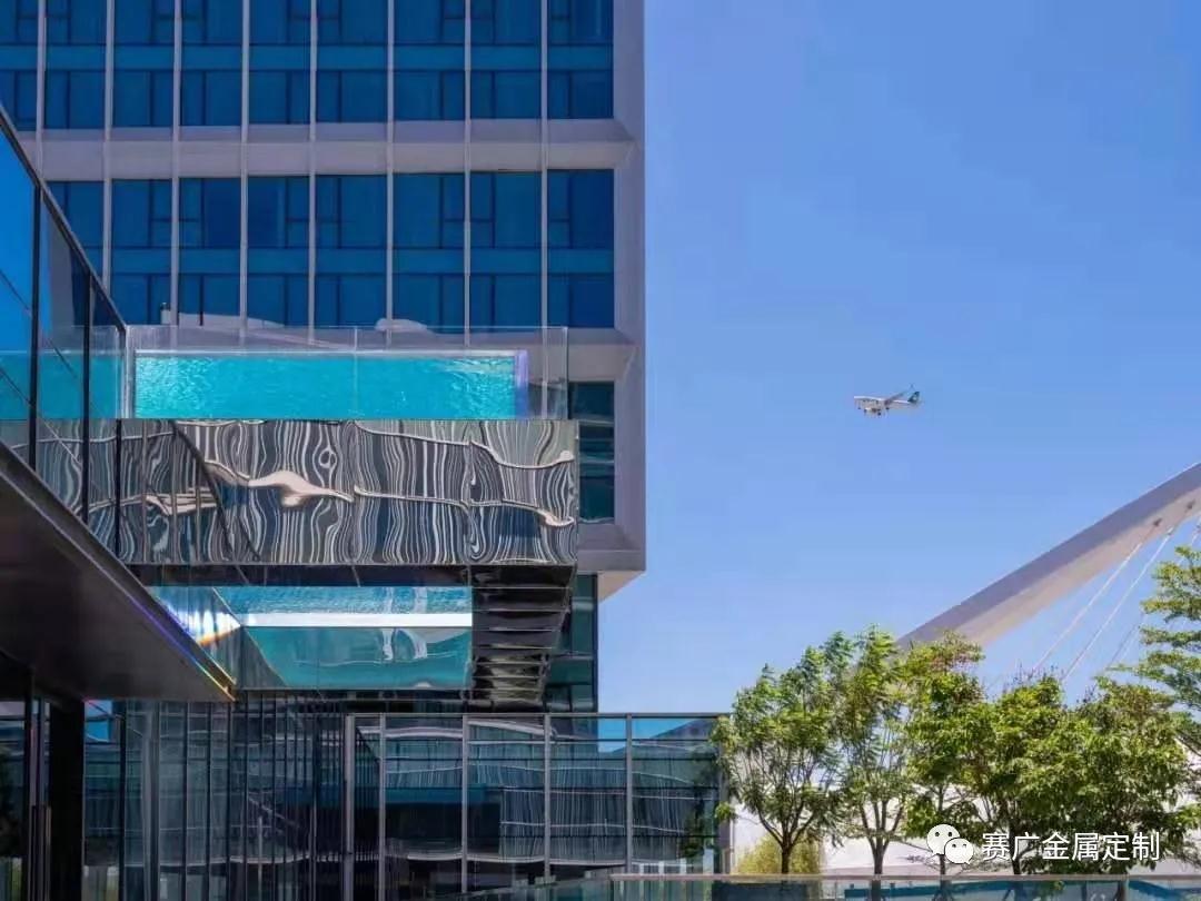 整個入水雨棚有5m高,落差使得視覺感受不同,特別到了晚上,在燈光的加持下又顯現(xiàn)出另一番風(fēng)味。