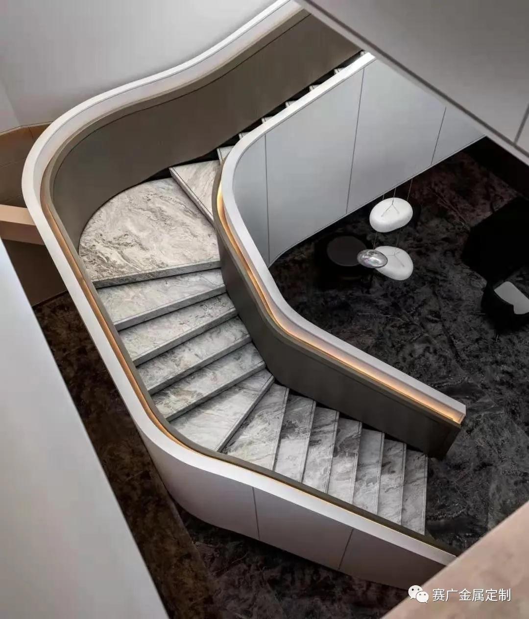 大堂樓梯間的設(shè)計(jì)也別有洞天,蜿蜒曲折的的樓梯,懸掛的白玉色燈體,置身其中仿佛就在竹林河邊趟石過溪一般,好不樂趣。