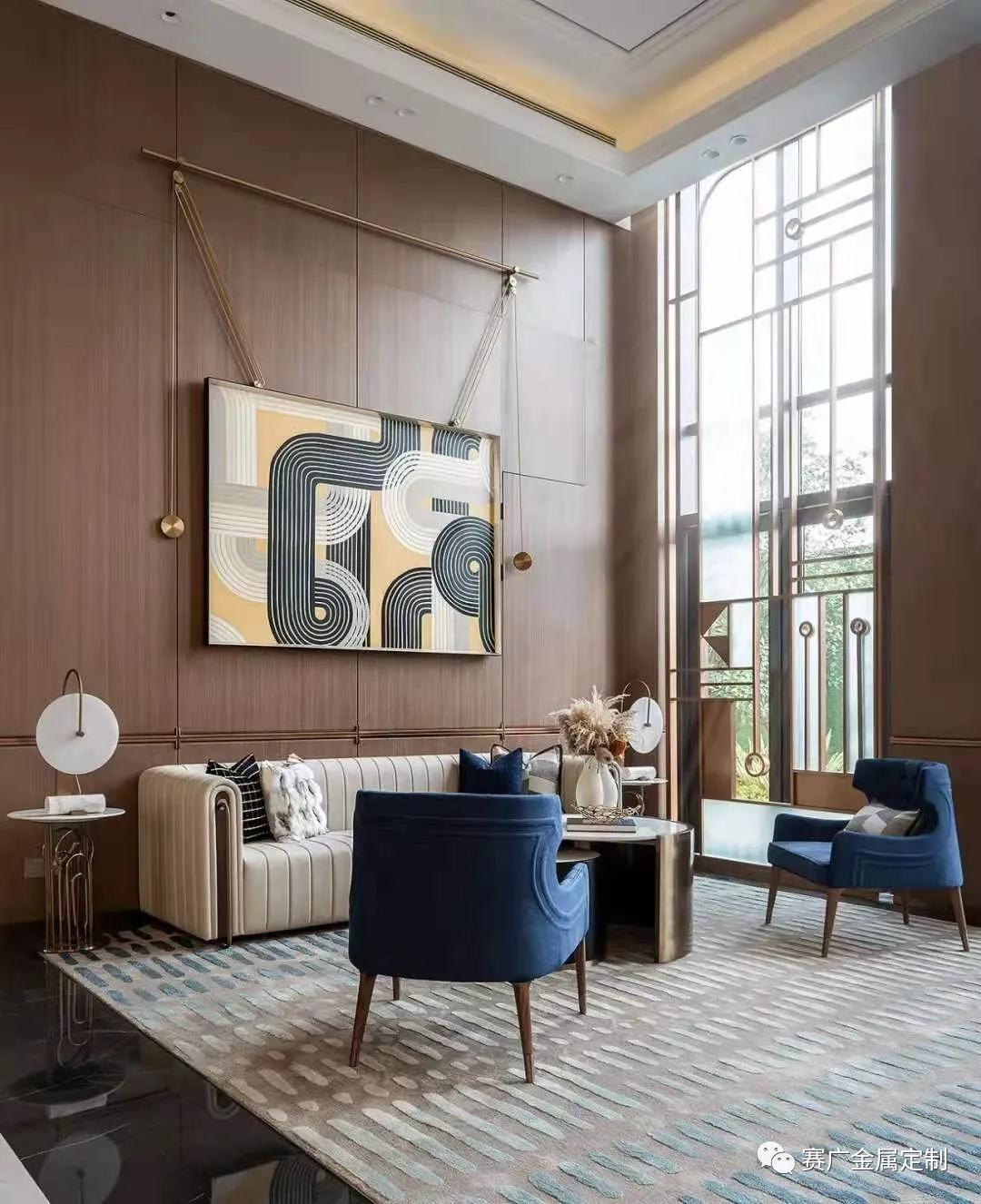 閑閑著筆,步入藝術(shù)大廳,依舊為匹配項(xiàng)目需要,整個(gè)風(fēng)格植入了海派文化中經(jīng)典藝術(shù)色塊與幾何線條的圍合鋪敘,提供體驗(yàn)當(dāng)代藝術(shù)新趣的場(chǎng)域力量。
