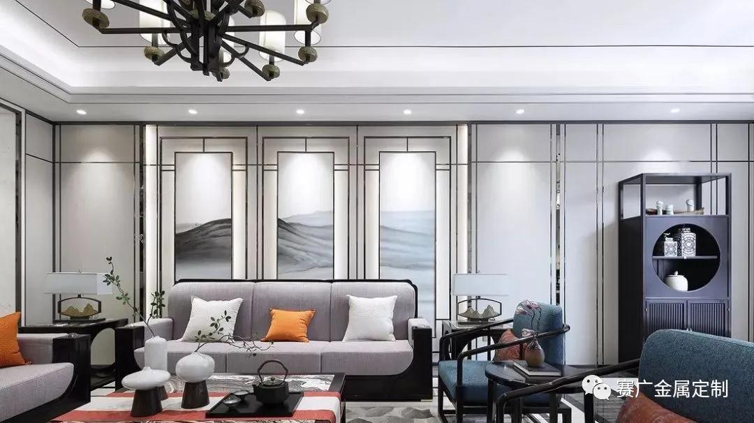 新中式金屬線條不銹鋼鑲嵌硬包背景墻裝飾